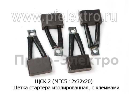ЩСК 2 (МГС5 12х32х20) Щетка стартера 2501.3708, 2501.3708-21, 2501.37, для маз, краз, белаз, изолир., с клеммами (К)