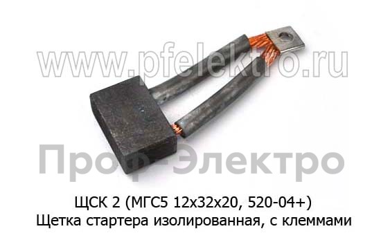 ЩСК 2 (МГС5 12х32х20, 520-04+) Щетка стартера 2501.3708, 2501.3708-21, 2501.3708-40, для маз, краз, бела, изолир., с клеммами (продавать по 4шт.)