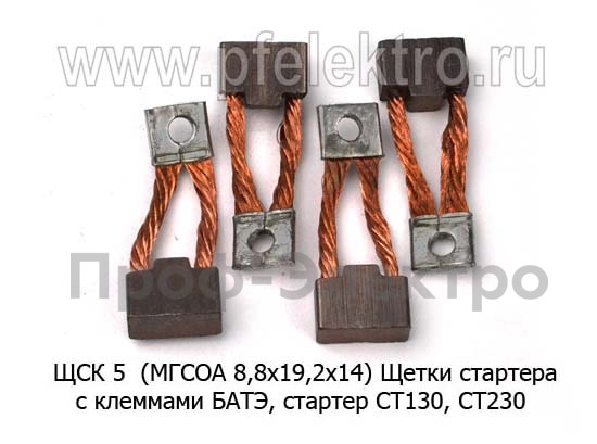 ЩСК 5 (МГСОА 8,8х19,2х14) Щетки стартера СТ130, СТ230 с клеммами "БАТЭ", для зил, газ, уаз, паз (Энергомаш)