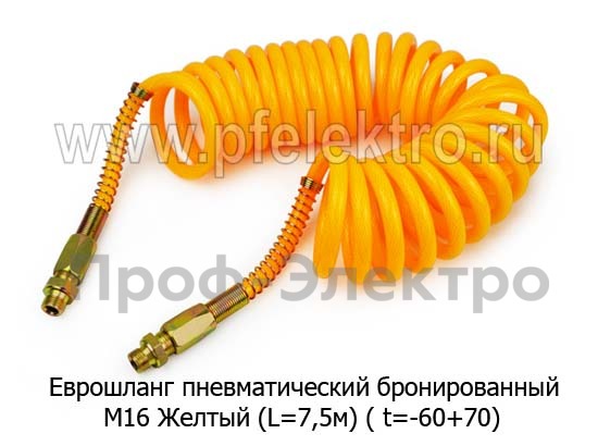 Шланг пневматический (Бронированный) М16 Желтый (L=7,5м) Еврошланг пневматический, витой ( t=-60+70) грузовые т/с
