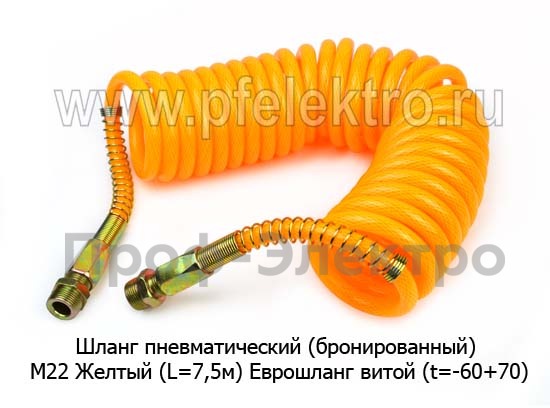 Шланг пневматический (Бронированный) М22 Желтый (L=7,5м) Еврошланг пневматический, витой ( t=-60+70) грузовые т/с