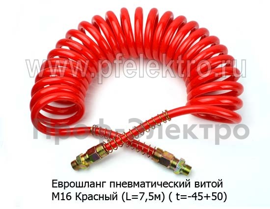 Шланг пневматический М16 Красный (L=7,5м) Еврошланг пневматический, витой ( t=-45+50) грузовые т/с