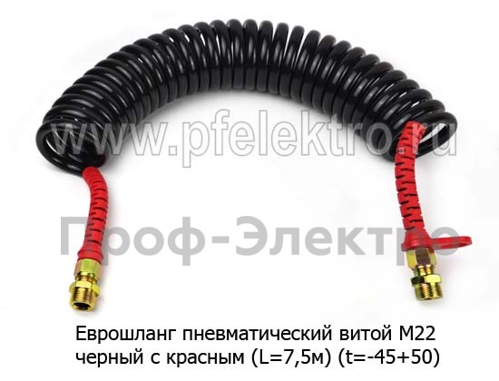 Шланг пневматический М22 Черный с Красным (L=7,5м) Еврошланг пневматический, витой ( t=-45+50) грузовые т/с