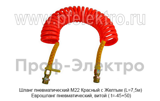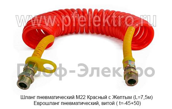 Шланг пневматический М22 Красный с Желтым (L=7,5м) Еврошланг пневматический, витой ( t=-45+50) грузовые т/с