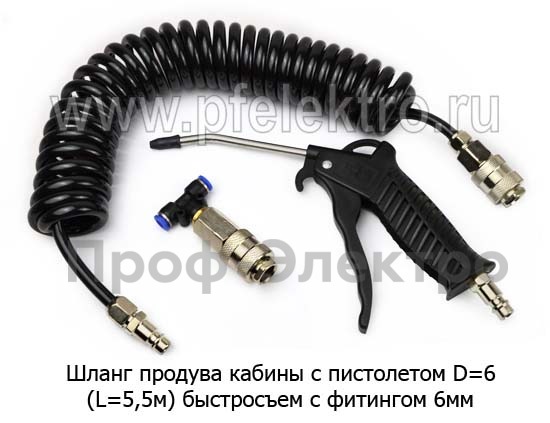 Шланг продува кабины D=6 (НАБОР в блистере) Шланг продувочный с пистолетом (L=5,5м) быстросъем с фитингом 6мм, грузовые т/с