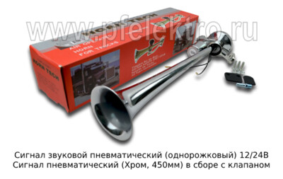 Сигнал пневматический (Хром, 450мм) в сборе с клапаном, иномарки, грузовые ТС (К)