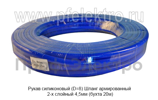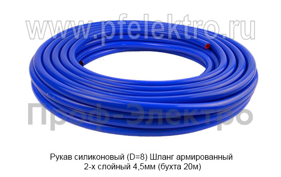Рукав силиконовый (D=8) Шланг силиконовый, армированный 2-х слойный 4,5мм (бухта 20м) все т/с (К)