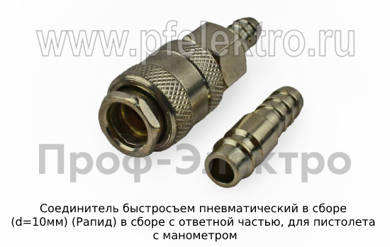 Соединитель быстросъем пневматический в сборе (d=10мм) Соединитель (Рапид) в сборе с ответной частью, для пистолета с манометром, все т/с