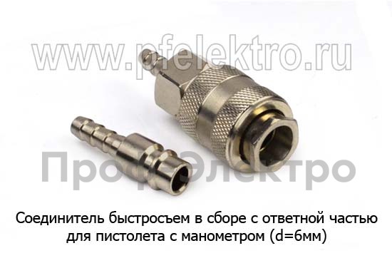 Соединитель быстросъем пневматический в сборе (d=6мм) Соединитель (Рапид) в сборе с ответной частью, для пистолета с манометром, все т/с