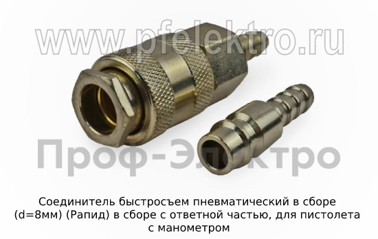 Соединитель быстросъем пневматический в сборе (d=8мм) Соединитель (Рапид) в сборе с ответной частью, для пистолета с манометром, все т/с