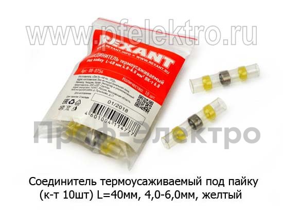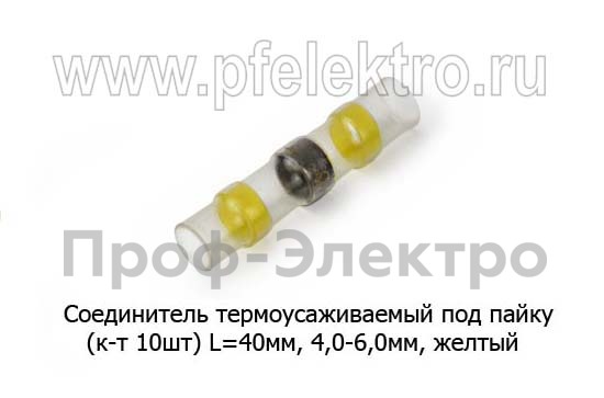 Соединитель термоусаживаемый под пайку (желтый) (к-т 10шт) Соединитель L=40мм, 4,0-6,0мм, желтый, все т/с (Rexant)
