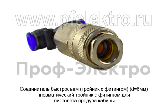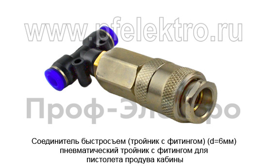 Соединитель быстросъем (тройник с фитингом) (d=6мм) пневматический Соединитель тройник с фитингом для пистолета продува кабины, все т/с