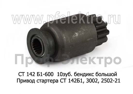 СТ 142 Б1-600 10зуб. бол. Привод стартера (бендикс) СТ 142Б1, 3002, 2502-21, для камаз, урал, лиаз, спецтехника (БАТЭ)