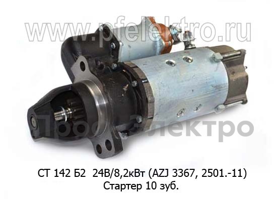 СТ 142 Б2 (АЕ) 24В/8,2кВт (ан.AZJ 3367, 2501.-11) 10зуб. Стартер камаз, урал, зил-133ГЯ, -4331, лиаз, лаз, автобусы, тракторы (АЕ)