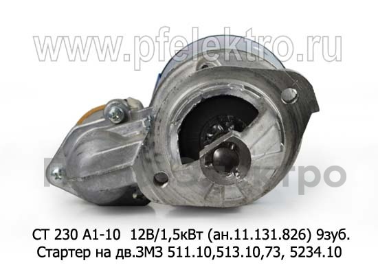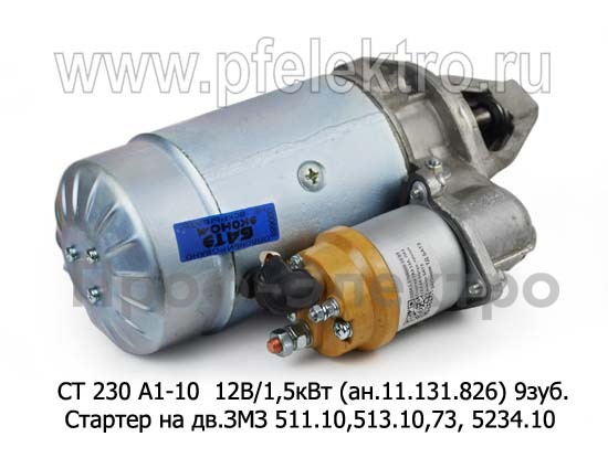СТ 230 А1-10 (ВТ) 12В/1,5кВт (ан.11.131.826) 9зуб. Стартер для газ-53, -66, -71, -73, паз-672 М, дв.ЗМЗ 511.10,513.10,73, 5234.10 (ВТ)