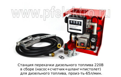 Станция в сборе (насос+счетчик+шланг+пистолет) для дизельного топлива, произ-ть-65л/мин.(К)