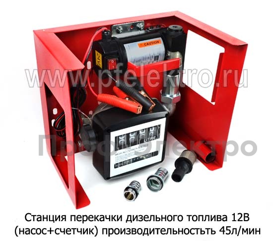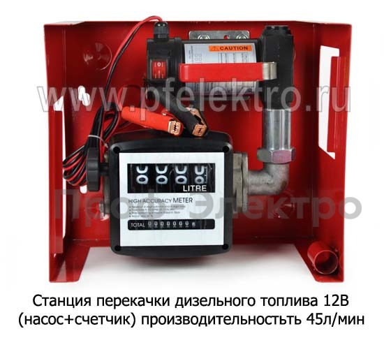 Станция перекачки дизельного топлива 12В Станция перекачки (насос+счетчик) для дизельного топлива, произ-ть-45л/мин, (К)