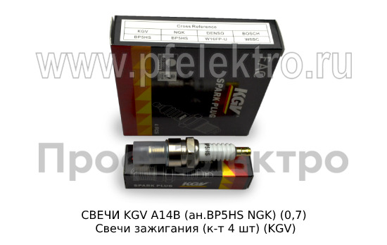 СВЕЧИ KGV А14В (ан.BP5HS NGK) (0,7) Свечи зажигания (к-т 4 шт) для Волга дв.402, зил, газ, уаз, мотоциклы урал, Skoda, VW Citroen (KGV)