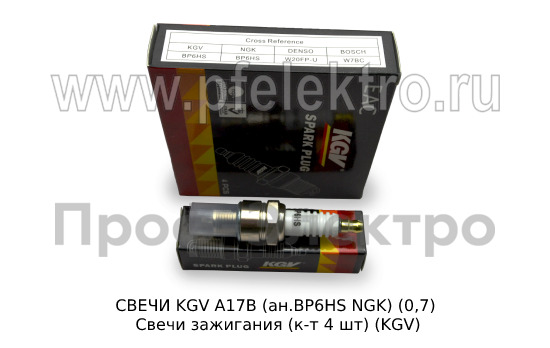 СВЕЧИ KGV А17В (ан.BP6HS NGK) (0,7) Свечи зажигания (к-т 4 шт) для Волга дв.402, уаз, мотоциклы урал, Citroen, DAF, Skoda (KGV)
