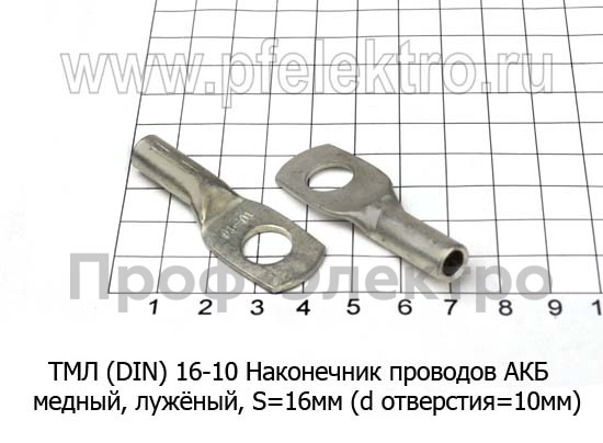 ТМЛ 16-10 Наконечник АКБ медный, лужёный, под провод S=16мм (d отверстия=10мм) все т/с (завод)