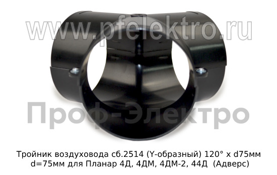 Тройник воздуховода сб.2514 (Y-образный) 120° х d75мм Тройник воздуховода d=75мм для Планар 4Д, 4ДМ, 4ДМ-2, 44Д (Адверс)