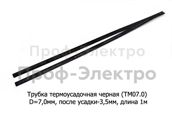 Трубка термоусадочная черная (ТМ07.0) Трубка термоусадочная (D=7,0мм, после усадки-3,5 мм) L=1000мм все т/с (ДЛ)