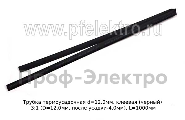 Трубка КЛЕЕВАЯ термоусадочная d=12.0мм (черный) Трубка термоусадочная 3:1 (D=12,0мм, после усадки-4,0мм), L=1000мм, все т/с (КВТ)