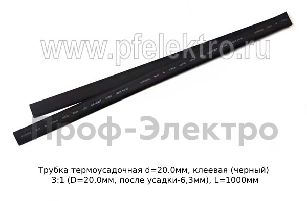 Трубка КЛЕЕВАЯ термоусадочная d=20.0мм (черный) Трубка термоусадочная 3:1 (D=20,0мм, после усадки-6,3мм), L=1000мм, все т/с (КВТ)