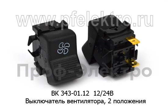 ВК 343-01.12 12/24В Выключатель вентилятора для Москвич, зил, маз, кавз, каз, белаз (2п) (Радиодеталь)