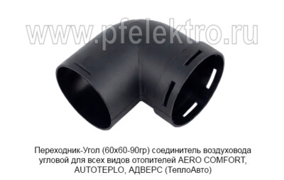 Переходник-соединитель воздуховода угловой для всех видов отопителей AERO COMFORT, AUTOTEPLO, АДВЕРС (ТеплоАвто)