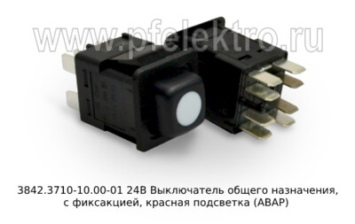 Выключатель общего назначения, с фиксацией, красная подсветка, для камаз, газ, зил (АВАР)