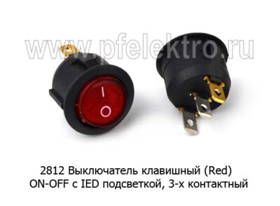 Выключатель клавишный ON-OFF c LED подсветкой, 3-х контактный
