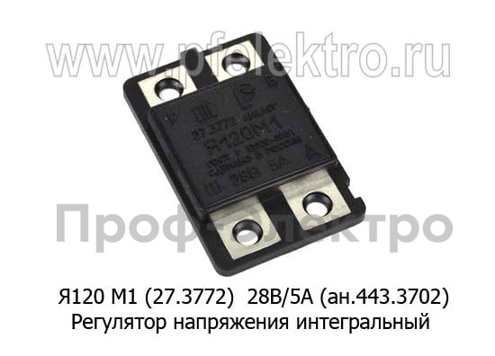 Я120 М1 28В/5А (27.3772) (ан.77.3702, 443.3702) Регулятор напряжения интегральный ам камаз, маз, лаз, урал, зил6309, с ген.Г273, 3112., 3122.(Ромб)