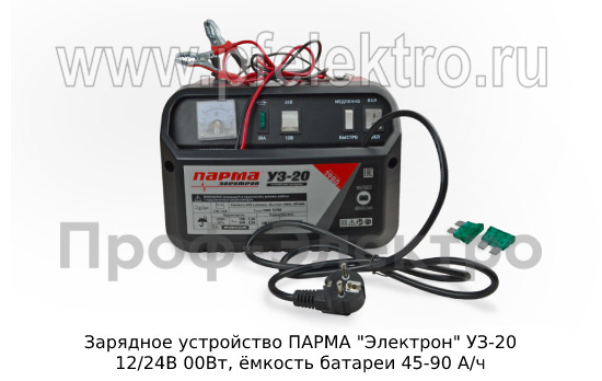 Зарядное устройство ПАРМА "Электрон" УЗ-20 12/24В Зарядное устройство 300Вт, ёмкость батареи 45-200 А/ч