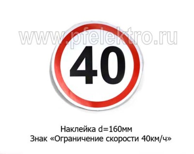 Наклейка Знак Ограничение скорости 40 км/ч