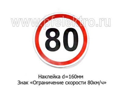 Наклейка Знак Ограничение скорости 80 км/ч
